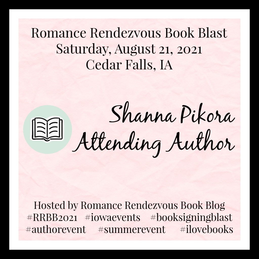 I am excited to announce that you will be able to meet me in person and purchase my books at this year’s Romance Rendezvous Book Blast! This event takes place every year (last year was an exception) in Cedar Falls, Iowa. It is a wonderful event with many romance authors of different sub-genres. You get to walk around and talk with the authors, buy their books, be entered to win door prizes, and get an AMAZING swag bag!