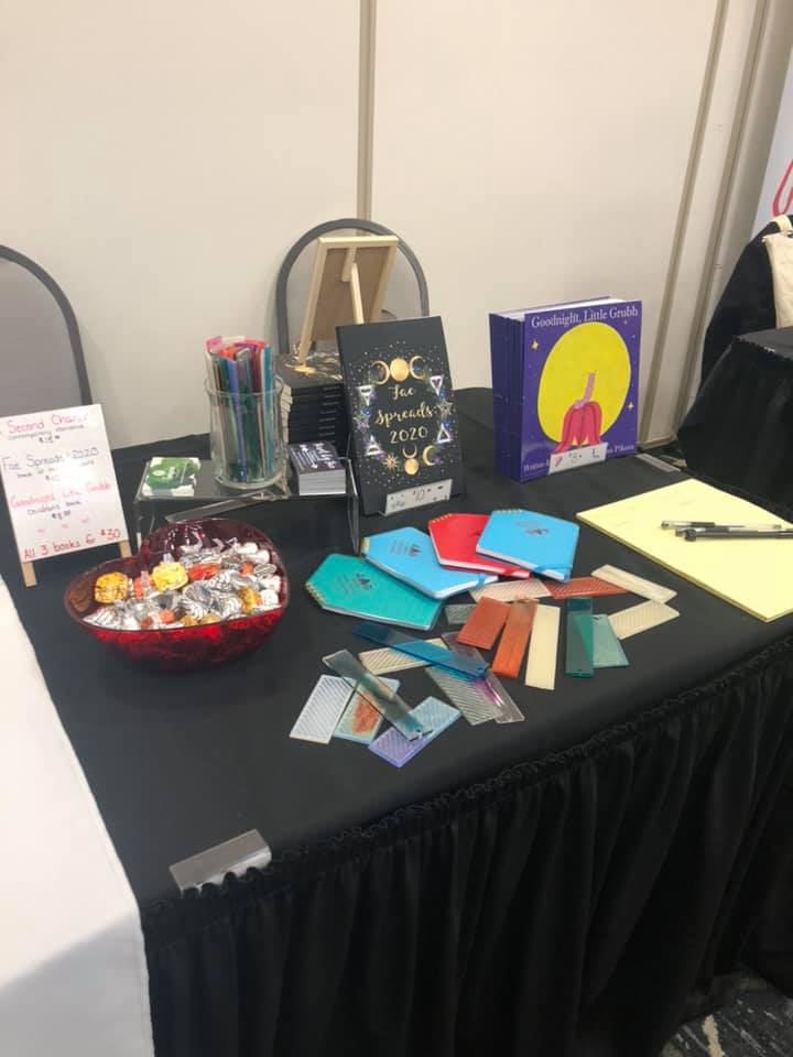 As I said, the event was joyous and already has me planning for the next one (which probably won’t be until 2022, sadly). I have more ideas for stories, swag, raffle baskets, and more…assuming it will all fit on my table. I will definitely request a full sized table next year. Having the extra room was nice to spread out and display all the fun things people could grab as giveaways!