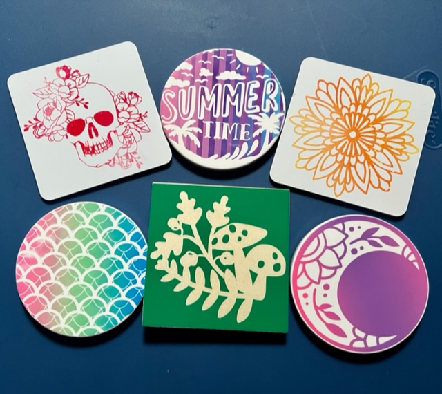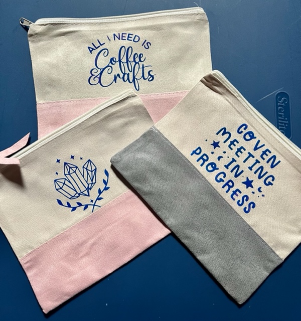 These three items are my ABSOLUTE FAVORITE to make. Not only are they easy to transfer, but I get to bust out my ironing board as well! We have pencil bags (variety of sizes), tote bags, and coasters! Some items (pencil bags and tote bags) are made with basic iron on fabrics, but the coasters (all but the dark green one) are made with infusible ink! They are so sharp, and in my opinion, the most fun. You can’t tell how it turns out until the very end, so it’s such an exciting time to reveal the items!